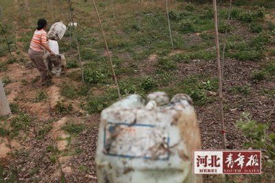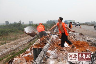 事故现场弥漫着化学剂品的刺鼻味道,在高速路北侧,十几个警示牌圈起了一片警戒区,中间堆放着几十袋白色和黄色的颗粒,袋子上标有“聚合氯化铝”的字样,十几个大塑料桶丢在高速坡下的水沟里。高速交警介绍,这是用于处理水的化学剂品,危害并不大,是从其中一辆事故车上掉下来的。