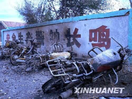 厂区内被爆炸焚毁的摩托车残骸(摄于8月31日)。8月30日,内蒙古自治区赤峰市敖汉旗四家子镇鑫鑫花炮有限责任公司厂区发生爆炸。目前已造成15人死亡,6人受伤。经初步认定,这次事故是一