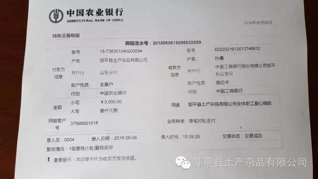 6月6日,山东省烟花爆竹协会副会长单位——邹平县土产杂品有限公司得知消息后,“邹平县土产杂品有限公司爱心基金”立即向刘欣瑜小朋友无偿捐赠了3000元。一方有难八方支援,邹平县土产杂品有限公司在发展事业的同时,不忘回报社会,主动参与社会慈善工作,弘扬了社会正能量,使中华民族扶危济困的传统美德,继续发扬传承。