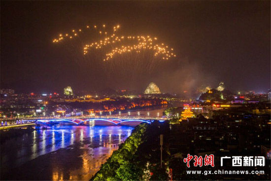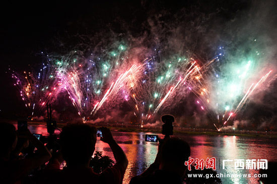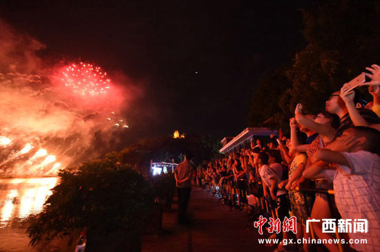 当晚,广西首届国际音乐焰火节精彩不断,全城市民及游客涌向象山公园,活动现场人山人海,附近的解放桥、滨江路、漓江桥等观景点亦是热闹非凡。大型舞蹈《大地飞歌》拉开了盛会的帷幕;接着,大型山水激光秀《象山传奇》奇幻上演,融合科技与文化,3D全息投影震撼人心;近半小时璀璨焰火在200米高空绽放,让桂林呈现出罕见的人造“极昼”现象,惊艳了现场观众。
