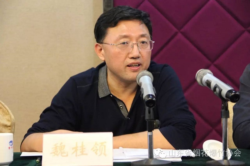 魏桂领在讲话中强调,一是在烟花爆竹经营旺季到来之际,公安机关和各企业要高度重视大型焰火燃放和烟花爆竹运输、销售等环节的安全工作。二是必须严格按照公安部的要求进行换证,并减轻企业负担,确?;恢すぷ鞴娣队行蚪小H峭怀鲋氐阕ズ醚袒ū竦挠泄毓ぷ?,做好退出企业的余料清查、销毁、人员管理等重要工作。肯定了山东省烟花爆竹协会在联系政府、服务企业、促进行业自律等方面发挥的桥梁、纽带作用,特别是开展征信体系建设,将省外优秀的生产企业纳入协会会员中,把不合格产品拒之门外,为山东省烟花爆竹消费市场提供了保障。